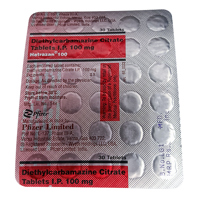 Одна таблетка содержит активное вещество: диэтилкарбамазин цитрат – 100 мг.