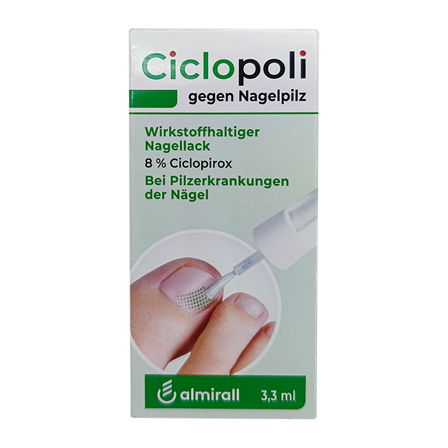 Лак Циклопирокс представляет собой противогрибковый препарат широкого спектра с дополнительной антибактериальной и противовоспалительной активностью. Уменьшает зуд, воспаление околоногтевых валиков и препятствует вторичной инфекции.