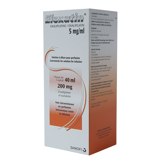 - частота возникновения этих побочных эффектов увеличивается при лечении препаратом Элоксатин® (85 мг/м2 каждые 2 нед) в комбинации с фторурацил +/- кальция фолинат по сравнению с монотерапией в препаратом Элоксатин® в дозе 130 мг/м2 каждые 3 нед, например частота анемии (80% по сравнению с 60%), частота нейтропении (70% по сравнению с 15%), частота тромбоцитопении (80% по сравнению с 40%).
