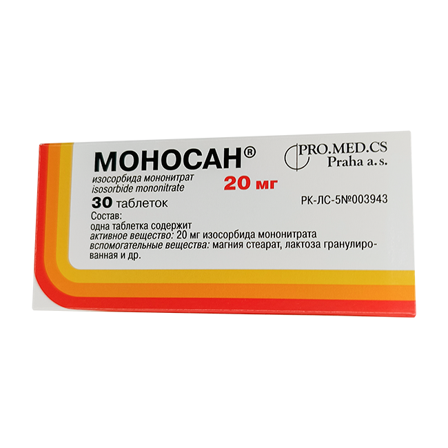 Моносан – лекарственный препарат, относящийся к нитратам. Применяется для профилактики и лечения приступов боли в груди, вызванных недостаточным кровоснабжением сердца. Лекарство улучшает кровоснабжение сердца, снижает необходимость в дополнительном питании кислородом и тем самым помогает предотвратить спазмы сосудов.