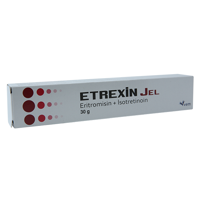 Этрексин (Изотрексин) - комбинированный препарат для лечения угревой сыпи. Изотретиноин - одна из биологически активных форм витамина А, оказывает регулирующее воздействие на рост клеток эпителия, их дифференциацию. Оказывает антисеборейное, противовоспалительное, кератолитическое действие. Эритромицин - антибиотик группы макролидов, оказывает ингибирующее действие на синтез белка в бактериях путем обратимого связывания рибосомальных подгрупп.