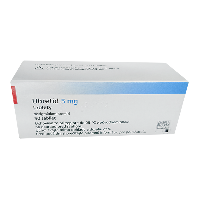 Поскольку Убретид имеет две четвертинные аммониевые группы, его связывание с ацетилхолинэстеразой является более стойкой, и выделение с мочой после энзиматично обусловленного гидролитического расщепления – более медленным, чем у ингибиторов холинэстеразы с одной аммониевой группой.